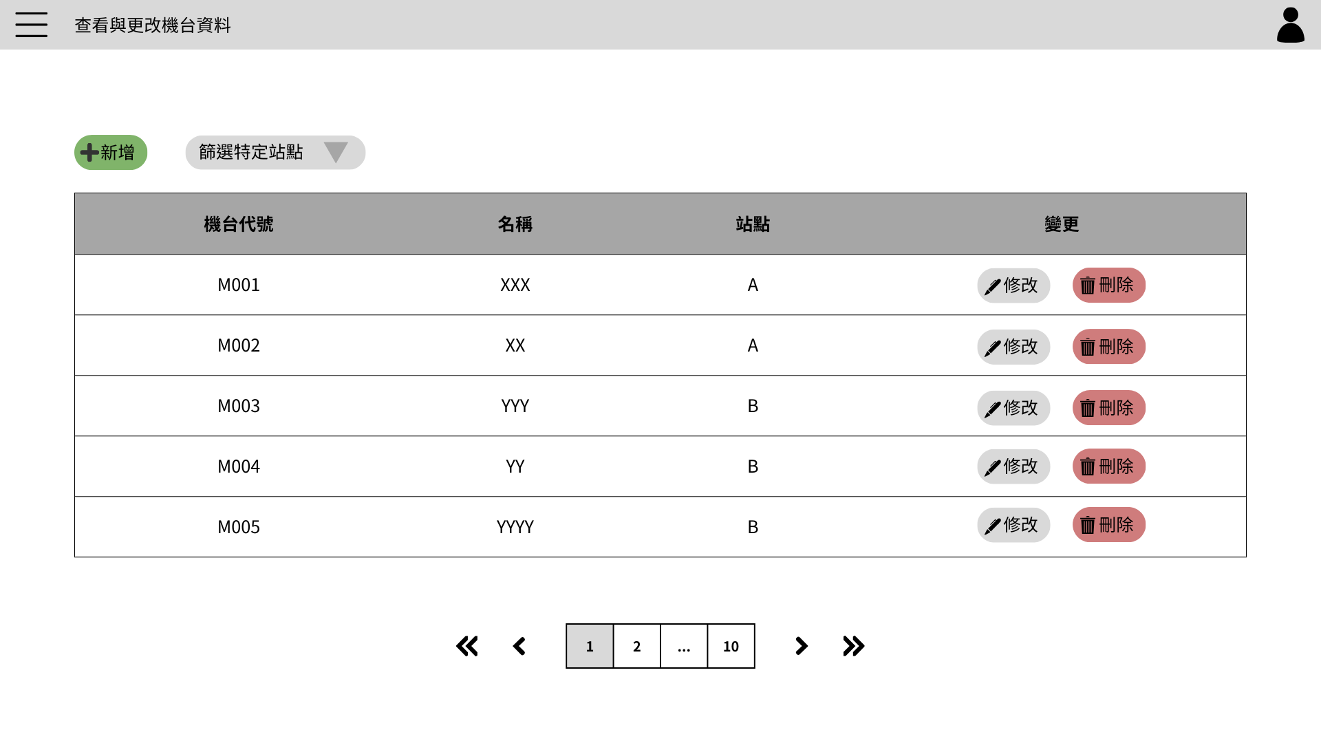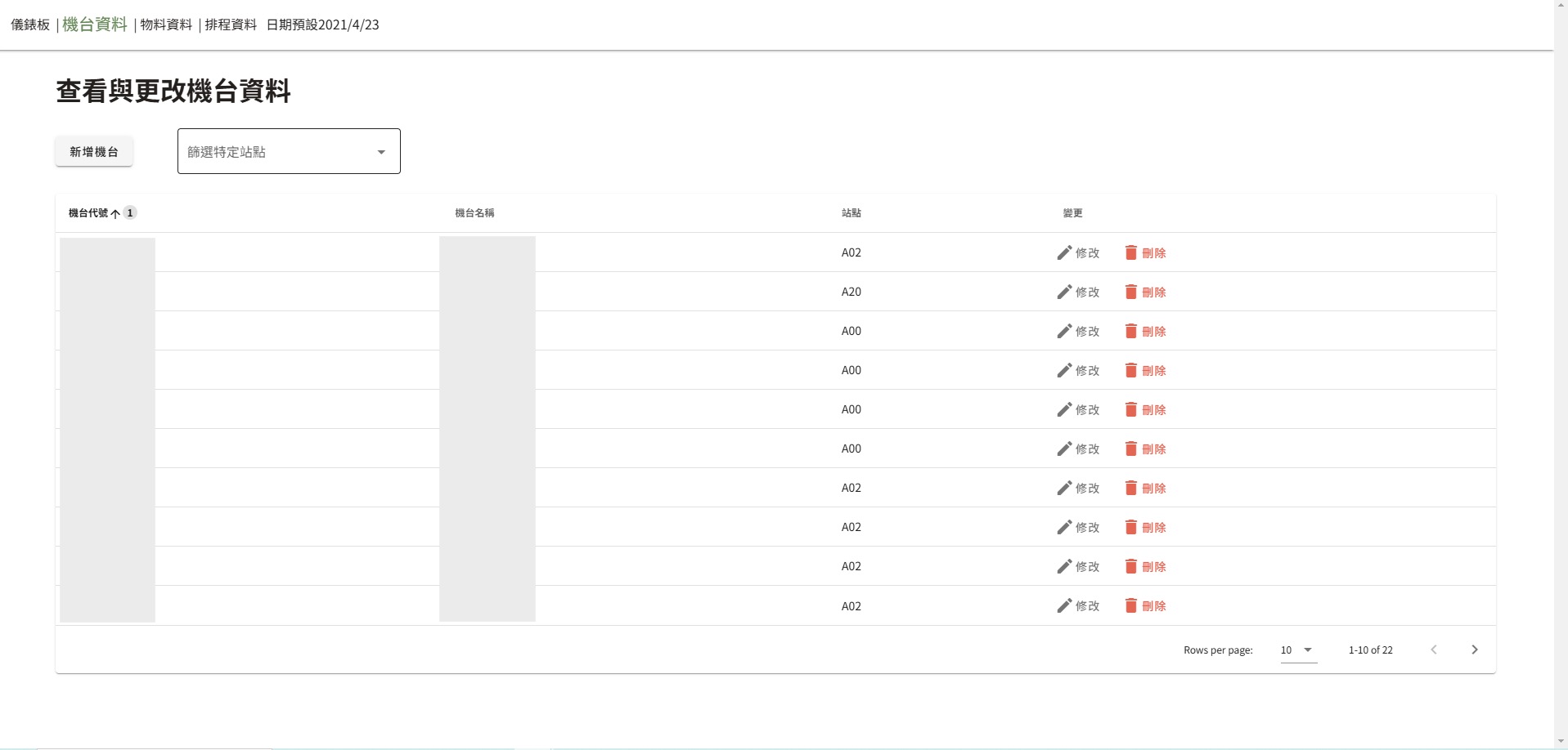 機台資料表頁面