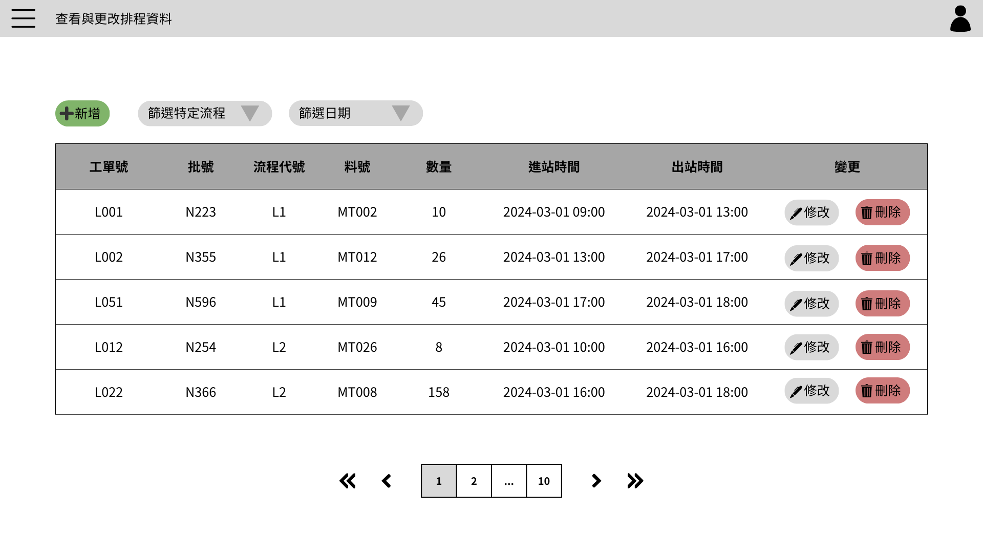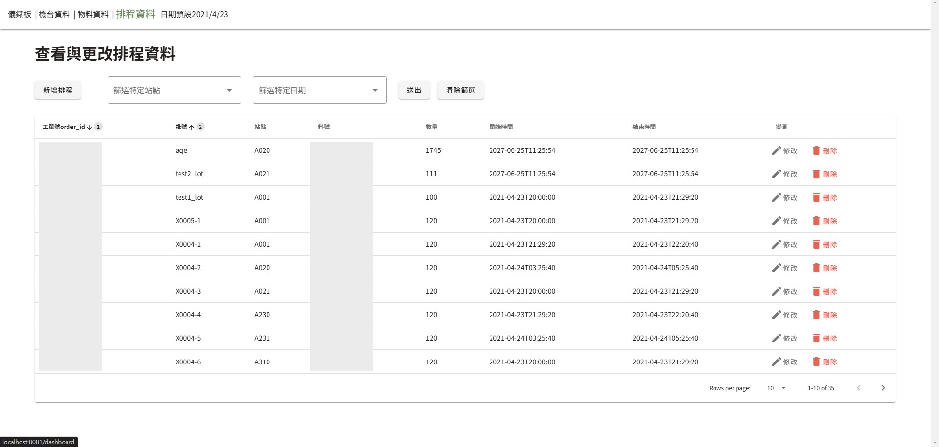 排程資料表頁面