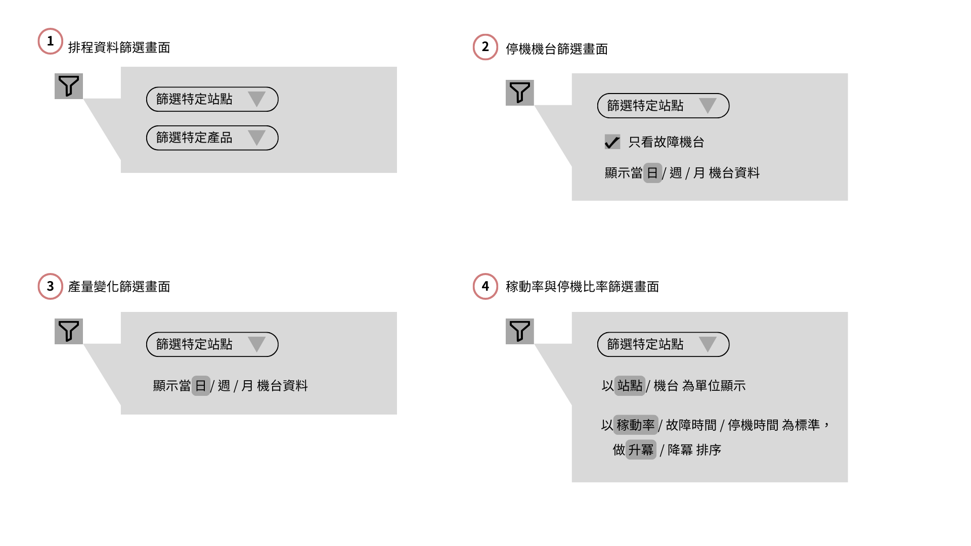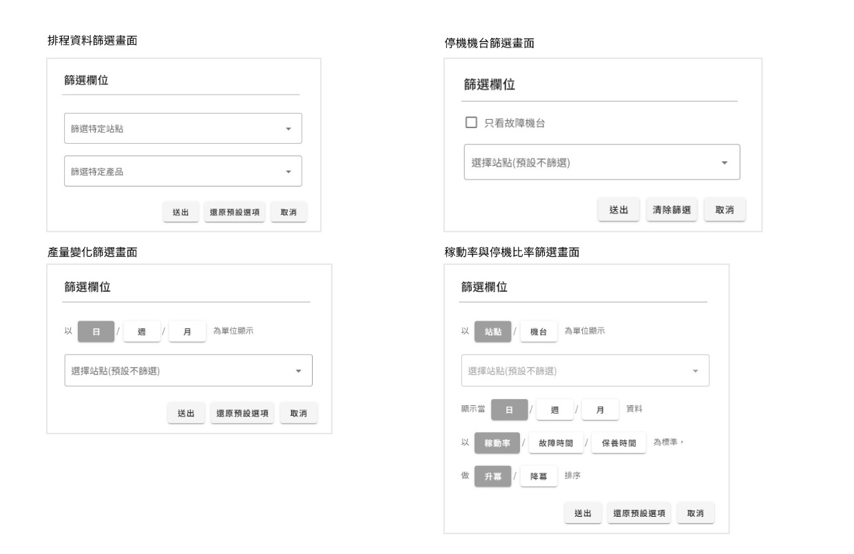 每個區塊各自的篩選條件視窗